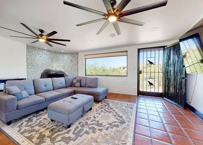 The 3-bedroom Hilltop:Mt Views! Cyclist+Golf+Remodeled+Foothills is around 10 minutes' drive from the for-profit shopping mall "Trail Dust Town", and around 10 minutes' drive from Morris K Udall Park and Recreation Center. The villa is approximately 177 square metres in size.